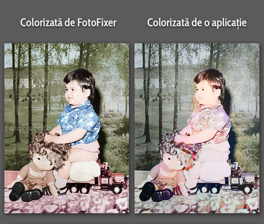 Sigur că poți să folosești o aplicație de colorizat, dacă n-ai pretenții s-o și printezi. Unele aplicații AI dau rezultate ok-ish dacă și numai dacă poza alb-negru e de calitate. Însă pentru pozele de calitate slabă, adică astea care ajung la FotoFixer pentru restaurare, rezultatul colorizării automate este, în 99% din cazuri, că îți dorești să ai cataractă. Mai uită-te o dată la poza de mai sus!